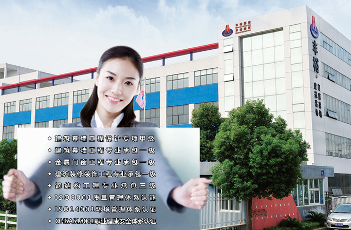 公司現具備建筑幕墻工程設計專項甲級資質、建筑幕墻工程專業(yè)承包一級、建筑裝修裝飾工程專業(yè)承包一級、鋼結構工程專業(yè)承包三級、建筑門窗行業(yè)資格產品制造一級、建筑門窗行業(yè)資格產品安裝一級、江蘇省標準化窗推廣證企業(yè)。